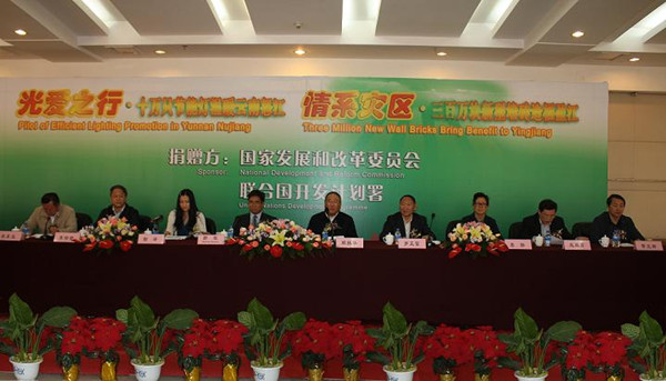 3月10日,国家发展改革委在昆明市举行向云南省怒江州、德宏州盈江县捐赠节能灯、新型墙体材料活动仪式。国家发展改革委副主任解振华、联合国开发计划署驻华代表处国别副主任那华先生出席活动仪式并致辞。