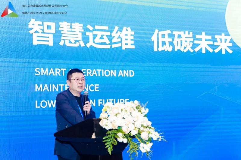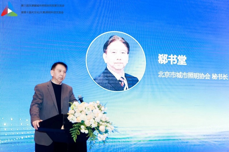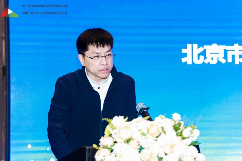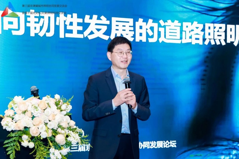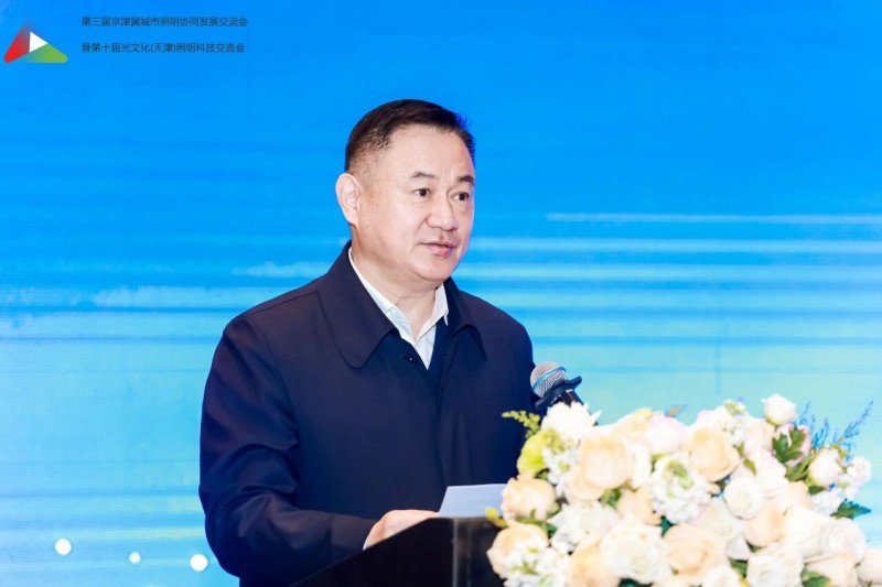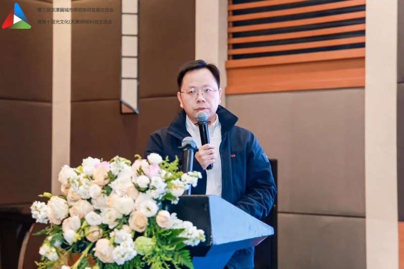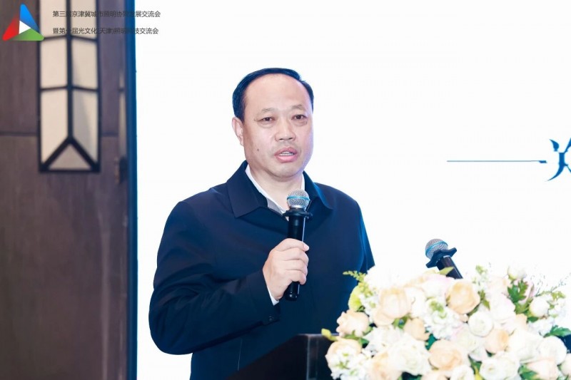 天津市城市管理委员会焦勇主任致辞,代表天津市城管委对大家的到来表示热烈的欢迎。他指出,京津冀协同发展是重大国家战略,城市照明是城市重要基础设施与民生名片。本次交流会以区域协同、低碳更新、韧性发展为主题,契合行业发展方向。他指出,三地要加强规划统筹、标准互通、资源共享,聚焦“双碳” 推进节能改造与智能升级,提升照明设施防灾抗灾与应急保障能力,携手推动京津冀城乡照明高质量发展。