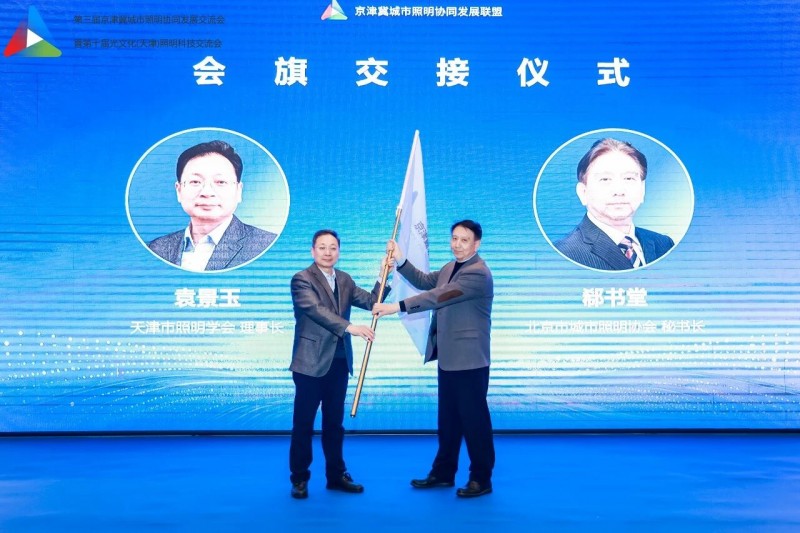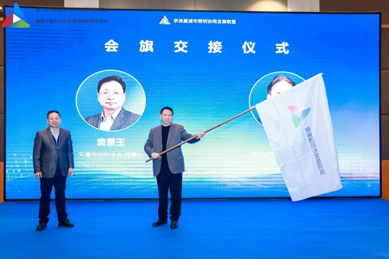 会议进行会旗交接仪式,由天津市照明学会理事长袁景玉,将会旗交至北京市城市照明协会秘书长郗书堂。与会嘉宾共同见证这一庄严而光荣的时刻!旗帜相传,是责任的接力;协同共进,是发展的承诺。